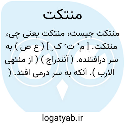 منتکت. [ م ُ ت َ ک ِ ] ( ع ص ) به سر درافتنده. ( آنندراج ) ( از منتهی الارب ). آنکه به سر درمی افتد. ( ناظم الاطباء ) ( از اقرب الموارد ). رجوع به انتکات شود.