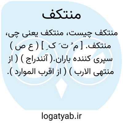 منتکف. [ م ُ ت َ ک ِ ] ( ع ص ) سپری کننده باران.( آنندراج ) ( از منتهی الارب ) ( از اقرب الموارد ). در باران عرضه شده تا سپری شدن باران. ( ناظم الاطباء ). || از جایی به جایی رونده. ( آنندراج ) ( از منتهی الارب ) ( از اقرب الموارد ). رجوع به انتکاف شود.