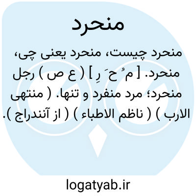 منحرد. [ م ُ ح َ رِ ] ( ع ص ) رجل منحرد؛ مرد منفرد و تنها. ( منتهی الارب ) ( ناظم الاطباء ) ( از آنندراج ). منفرد ومنه کانه کوکب فی الجو منحرد. ( از اقرب الموارد ).