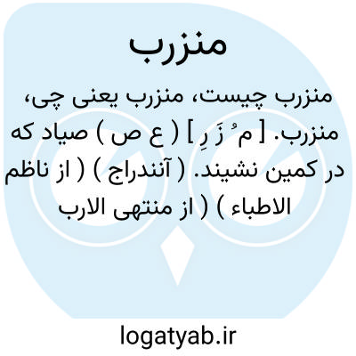 منزرب. [ م ُ زَ رِ ] ( ع ص ) صیاد که در کمین نشیند. ( آنندراج ) ( از ناظم الاطباء ) ( از منتهی الارب ) ( از اقرب الموارد ). رجوع به انزراب شود.