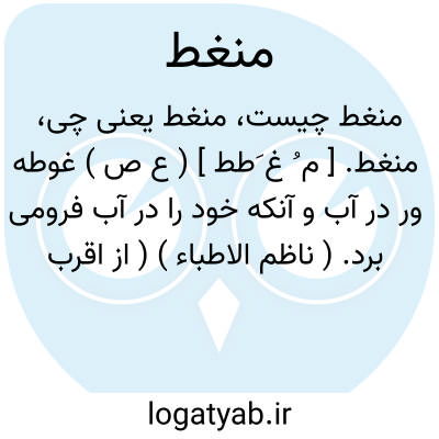 منغط. [ م ُ غ َطط ] ( ع ص ) غوطه ور در آب و آنکه خود را در آب فرومی برد. ( ناظم الاطباء ) ( از اقرب الموارد ). رجوع به انغطاط شود.