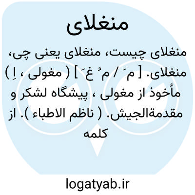 منغلای. [ م َ / م ُ غ َ ] ( مغولی، اِ ) مأخوذ از مغولی، پیشگاه لشکر و مقدمةالجیش. ( ناظم الاطباء ). از کلمه مغولی مانگلای، طلیعه. طلایه. پیشقراول. مقدمه لشکر. منقلا. ( یادداشت مرحوم دهخدا ): اگر پادشاه ما را سیورغامیشی فرماید به کوچ دادن مشغول باشیم و به منغلای با امراء بزرگ... اتفاق کنیم. ( تاریخ غازانی چ کارل یان ص 83 ). امیر علی ترخان را به رسم منغلای از پیش روان ساخت. ( حبیب السیر چ خیام ج 3 ص 579 ). رجوع به منقلای شود. || جبهه و پیشانی. ( ناظم الاطباء ).