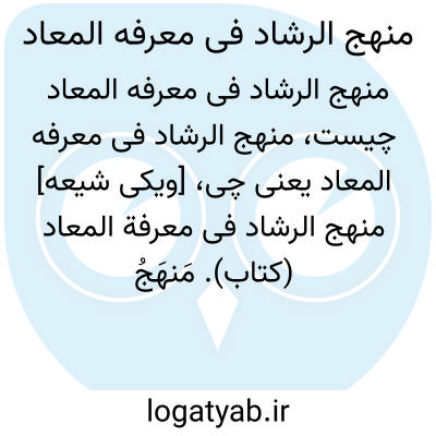 [ویکی شیعه] منهج الرشاد فی معرفة المعاد (کتاب). مَنهَجُ الرَّشاد فی مَعرفَةِ المَعاد کتابی کلامی به زبان عربی نوشته محمد نعیم طالقانی از عالمان شیعه در قرن ۱۲ق. وی با استفاده از مبانی فلسفی، عرفانی و تفسیری درباره معاد جسمانی و روحانی بحث کرده است. وی بیشترین تأثیر در ارائه مباحث را از ملاصدرا برده است.