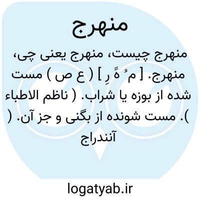 منهرج. [ م ُ هََ رِ ] ( ع ص ) مست شده از بوزه یا شراب. ( ناظم الاطباء ). مست شونده از بگنی و جز آن. ( آنندراج ). رجوع به انهراج شود.