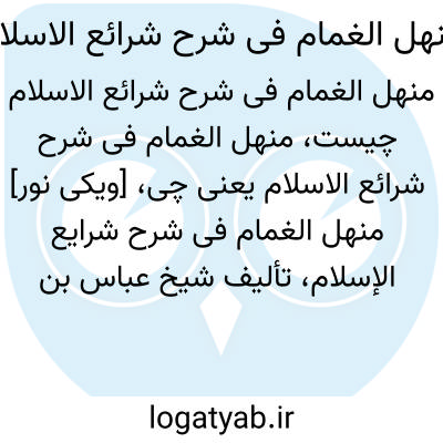 [ویکی نور] منهل الغمام فی شرح شرایع الإسلام، تألیف شیخ عباس بن شیخ حسن بن شیخ جعفر کاشف الغطاء(1253 - 1323ق)، از جمله شروح عربی کتاب «شرایع الإسلام فی مسائل الحلال و الحرام» محقق حلّی (602 - 676ق) است.