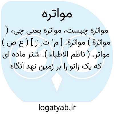 ( مواترة ) مواترة. [ م ُ ت ِ رَ ] ( ع ص ) مواتر. ( ناظم الاطباء ). شتر ماده ای که یک زانو را بر زمین نهد آنگاه دیگری نه هر دو را به یکبار، و این فعلش دشوار باشد مر سوار را. ( منتهی الارب ) ( آنندراج ). و رجوع به مواتر شود.