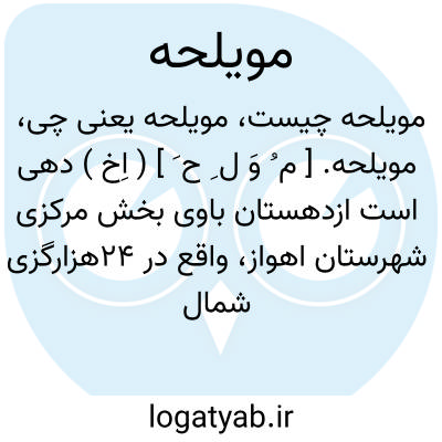 مویلحه. [ م ُ وَ ل ِ ح َ ] ( اِخ ) دهی است از دهستان جراحی بخش شادگان شهرستان خرمشهر، واقع در 58هزارگزی شمال خاوری شادگان با 251 تن سکنه. آب آن از چاه و ساکنان آن از طایفه شریفات هستند. ( از فرهنگ جغرافیائی ایران ج 6 ).