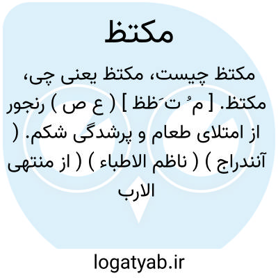 مکتظ. [ م ُ ت َظظ ] ( ع ص ) رنجور از امتلای طعام و پرشدگی شکم. ( آنندراج ) ( ناظم الاطباء ) ( از منتهی الارب ) ( از اقرب الموارد ). || وادی پرشده از سیل. ( ناظم الاطباء ) ( از منتهی الارب ) ( از اقرب الموارد ). و رجوع به اکتظاظ شود.