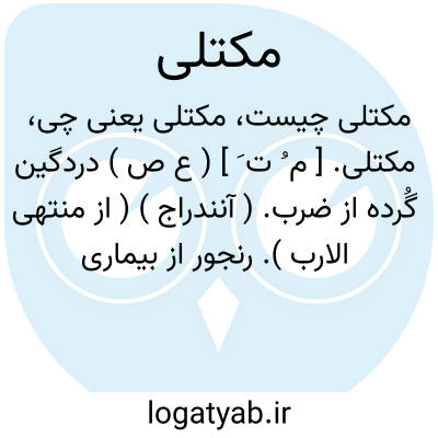 مکتلی. [ م ُ ت َ ] ( ع ص ) دردگین گُرده از ضرب. ( آنندراج ) ( از منتهی الارب ). رنجور از بیماری گُرده. ( ناظم الاطباء ). آن که به کلیه او چیزی اصابت کرده و به درد آمده باشد. ( از اقرب الموارد ). و رجوع به اکتلاء شود.