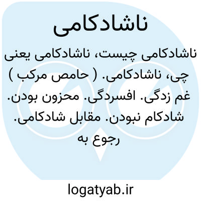 ناشادکامی. ( حامص مرکب ) غم زدگی. افسردگی. محزون بودن. شادکام نبودن. مقابل شادکامی. رجوع به ناشادکام و شادکامی شود.