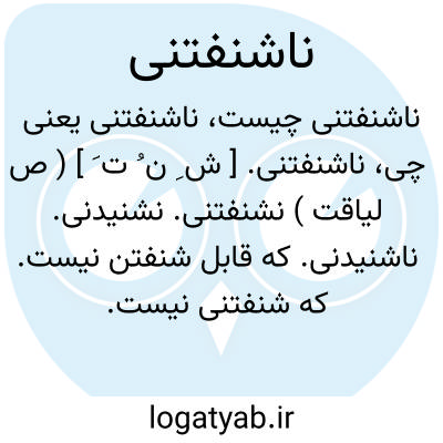 لغت نامه دهخدا ناشنفتنی. [ ش ِ ن ُ ت َ ] ( ص لیاقت ) نشنفتنی. نشنیدنی. ناشنیدنی. که قابل شنفتن نیست. که شنفتنی نیست.