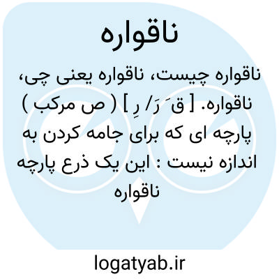 ناقواره. [ ق َ رَ/ رِ ] ( ص مرکب ) پارچه ای که برای جامه کردن به اندازه نیست: این یک ذرع پارچه ناقواره است؛ هیچ قسم جامه با آن نتوان کرد به علت کمی آن. ( یادداشت مؤلف ). || در تداول، نامتناسب. ناجور. بی قواره.