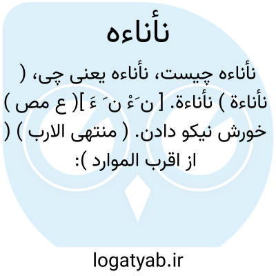 ( نأناءة ) نأناءة. [ ن َءْ ن َ ءَ ]( ع مص ) خورش نیکو دادن. ( منتهی الارب ) ( از اقرب الموارد ): نأناء فلاناً؛ احسن غذائه. ( المنجد ). || بازداشتن. ( منتهی الارب ). بازداشتن کسی را. ( ناظم الاطباء ) ( از اقرب الموارد ). نهی کردن و بازداشتن کسی را از کاری که میخواهد بکند. ( از المنجد ). || سست رای گردیدن. ( ناظم الاطباء ). سست رای گردیدن و نیکو کردن نتوانستن رأی را. ( از منتهی الارب ). سست کردن و به هم آمیختن رأی را و استوار نکردن رأی.( از اقرب الموارد ). || عاجز و قاصر گردیدن. ( منتهی الارب ) ( از اقرب الموارد ). || ( اِمص ) سستی. ( منتهی الارب ). || نأناءة الاسلام؛ ابتدای اسلام پیش از آنکه قوت گیرد. ( از معجم متن اللغة ): طوبی لمن مات فی النأناءة؛ یعنی اول الاسلام قبل أن یقوی. ( منتهی الارب ) ( از ذیل اقرب الموارد ).