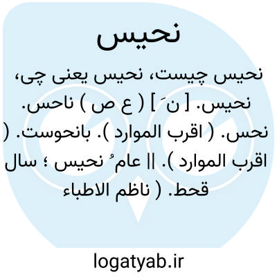 نحیس. [ ن َ ] ( ع ص ) ناحس. نحس. ( اقرب الموارد ). بانحوست. ( اقرب الموارد ). || عام ُ نحیس؛ سال قحط. ( ناظم الاطباء ). مجدب. ( اقرب الموارد ). رجوع به ناحس و نحس شود.