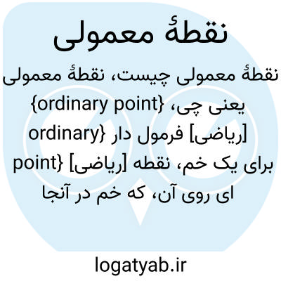 {ordinary point} [ریاضی] برای یک خم، نقطه ای روی آن، که خم در آنجا خودش را قطع نمی کند و مماس بر خم چرخش هموار دارد متـ. نقطۀ ساده simple point, regular point