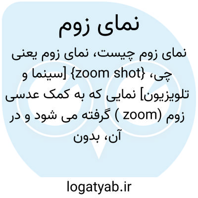 {zoom shot} [سینما و تلویزیون] نمایی که به کمک عدسی زوم (zoom ) گرفته می شود و در آن، بدون نیاز به حرکت دوربین، پهنۀ رویداد بازتر یا بسته تر می شود