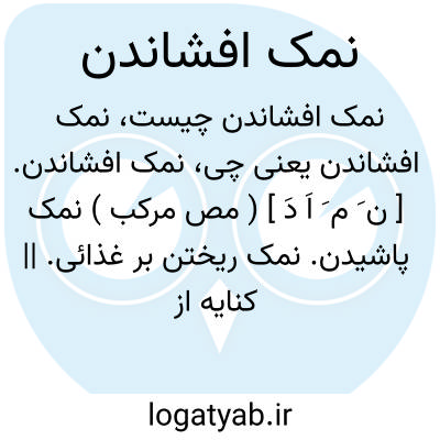 نمک افشاندن. [ ن َ م َ اَ دَ ] ( مص مرکب ) نمک پاشیدن. نمک ریختن بر غذائی. || کنایه از اشک ریختن. سرشک افشاندن.