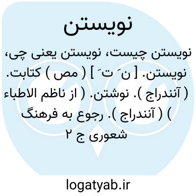 نویستن. [ ن َ ت َ ] ( مص ) کتابت. ( آنندراج ). نوشتن. ( از ناظم الاطباء ) ( آنندراج ). رجوع به فرهنگ شعوری ج 2 ص 410 و رجوع به نویشتن شود.