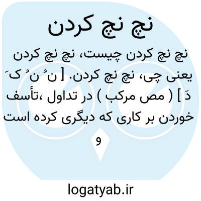نچ نچ کردن. [ ن ُ ن ُ ک َ دَ ] ( مص مرکب ) در تداول،تأسف خوردن بر کاری که دیگری کرده است و تأیید نکردن آن. || مِن مِن کردن. خرده گیری کردن.