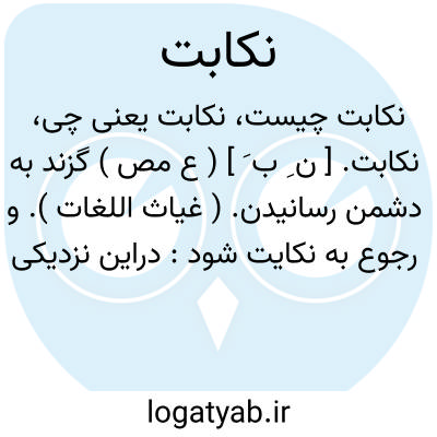 نکابت. [ ن ِ ب َ ] ( ع مص ) گزند به دشمن رسانیدن. ( غیاث اللغات ). و رجوع به نکایت شود: دراین نزدیکی جزیره ای است که نکابت اهل آن در حق ما زیادت از قصد دیگر دشمنان است. ( ترجمه اعثم کوفی ص 15 ). اهل سقلیه عراده ها از حصار روان می کردند، اصلاً کارگر نمی آمد و نکابتی و ضرری از آن به کسی نمی رسید. ( ترجمه اعثم کوفی ص 94 ).