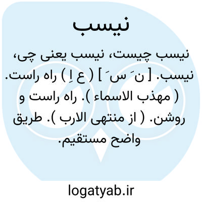 نیسب. [ ن َ س َ ] ( ع اِ ) راه راست. ( مهذب الاسماء ). راه راست و روشن. ( از منتهی الارب ). طریق واضح مستقیم. ( اقرب الموارد ) ( از متن اللغة ). نیسبان. ( منتهی الارب ) ( متن اللغة ) ( اقرب الموارد ) ( آنندراج ) ( ناظم الاطباء ). || نشان راه. ( منتهی الارب ). ما وجد من اثر الطریق. ( متن اللغة ) ( اقرب الموارد ). || راه مور. ( منتهی الارب ). راه مستدق چون راه مار و مور. ( از متن اللغة ). راه مور به هم آمیخته. ( مهذب الاسماء ). || صف مورچه و مور که در پی یکدیگر آیند. ( منتهی الارب ). مورچگان چون یکی از پی دیگری به راه افتند. ( از اقرب الموارد ) ( از متن اللغة ).