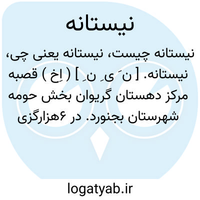 نیستانه. [ ن َ ی ِ ن ِ ] ( اِخ ) قصبه مرکز دهستان گریوان بخش حومه شهرستان بجنورد. در 6هزارگزی جنوب بجنورد،3هزارگزی شرق راه بجنورد به اسفراین در منطقه کوهستانی سردسیری واقع است و 1003 تن سکنه دارد. آبش از چشمه سار، محصولش غلات، بنشن، میوه جات و شغل اهالی زراعت و مالداری است. ( از فرهنگ جغرافیائی ایران ج 9 ).