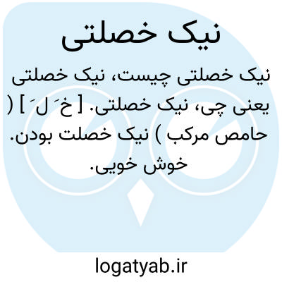 نیک خصلتی. [ خ َ ل َ ] ( حامص مرکب )