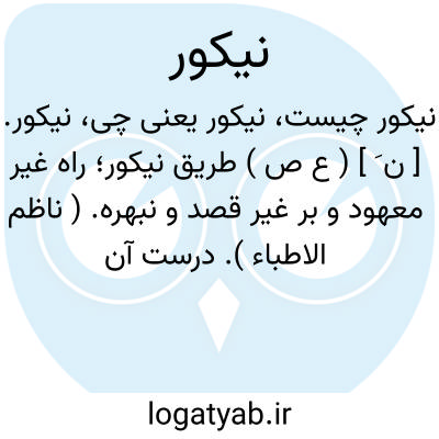 نیکور. [ ن َ ] ( ع ص ) طریق نیکور؛ راه غیر معهود و بر غیر قصد و نبهره. ( ناظم الاطباء ). درست آن ینکور است به تقدیم یاء بر نون. رجوع به ینکور و رجوع به اقرب الموارد و متن اللغة شود.