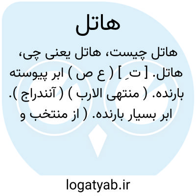هاتل. [ ت ِ ] ( ع ص ) ابر پیوسته بارنده. ( منتهی الارب ) ( آنندراج ). ابر بسیار بارنده. ( از منتخب و لطائف ) ( غیاث اللغات ). ابر بسیاربارنده. ج، هُتَّل. ( ناظم الاطباء ). هاطِل. رجوع به هاطل شود.