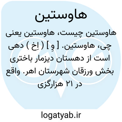 هاوستین. [ وِ ] ( اِخ ) دهی است از دهستان دیزمار باختری بخش ورزقان شهرستان اهر. واقع در 21 هزارگزی باختر خروانق ( مرکز دهستان ) و 23 هزارگزی شوسه تبریز به جلفا. ناحیه ای است کوهستانی، معتدل و دارای 517 تن سکنه ترک زبان است. آب آن از دو رشته چشمه و محصولش غلات، سردرختی و حبوبات است. اهالی به زراعت و گله داری مشغولند، صنایع دستی آنان جاجیم بافی است و راه مالرو دارد. ( فرهنگ جغرافیایی ایران ج 4 ).
