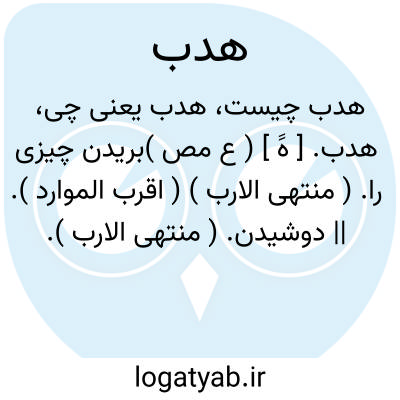 هدب. [ هََ ] ( ع مص )بریدن چیزی را. ( منتهی الارب ) ( اقرب الموارد ). || دوشیدن. ( منتهی الارب ). احتبال. ( اقرب الموارد ). || میوه چیدن. ( منتهی الارب ) ( اقرب الموارد ). || خرما رفتن. ( تاج المصادر بیهقی ).