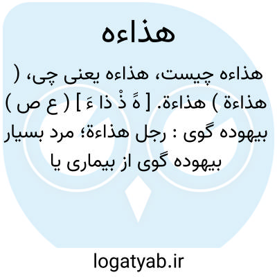 ( هذاءة ) هذاءة. [ هََ ذْ ذا ءَ ] ( ع ص ) بیهوده گوی: رجل هذاءة؛ مرد بسیار بیهوده گوی از بیماری یا خواب. ( منتهی الارب ). هذاء. ( اقرب الموارد ). رجوع به هذاء شود.