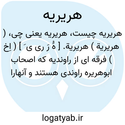 ( هریریة ) هریریة. [ هَُ رَ ری ی َ ] ( اِخ ) فرقه ای از راوندیه که اصحاب ابوهریره راوندی هستند و آنهارا عباسیه خلص نیز میخوانند... طرفدار امامت عباس بن عبدالمطلب عم حضرت رسول، و معتقد به ولایت ابومسلم اند. و در حق عباس و اولاد او غلو بسیار کنند. ( از خاندان نوبختی تألیف عباس اقبال ص 267 و تبصره ص 423 ).