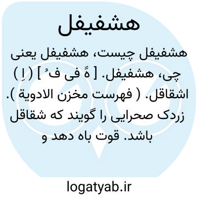 هشفیفل. [ هََ فی ف ُ ] ( اِ ) اشقاقل. ( فهرست مخزن الادویة ). زردک صحرایی را گویند که شقاقل باشد. قوت باه دهد و شیر زنان را زیاد کند. ( برهان ). شقاقل است. ( فهرست مخزن الادویة ). محتمل است که هشقیقل باشد با دو قاف به جای دو فاء که در آن صورت تلفظ لهجه ای است از شقاقل. و صاحب مخزن الادویه به دو قاف هم ضبط کرده است. رجوع به هشقیقل شود.