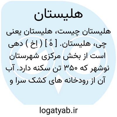 هلیستان. [ هََ ] ( اِخ ) دهی است از بخش مرکزی شهرستان نوشهر که 350 تن سکنه دارد. آب آن از رودخانه های کشک سرا و چالوس و محصول عمده اش برنج و لبنیات است. ( از فرهنگ جغرافیائی ایران ج 3 ).