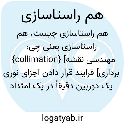 {collimation} [مهندسی نقشه برداری] فرایند قرار دادن اجزای نوری یک دوربین دقیقاً در یک امتداد
