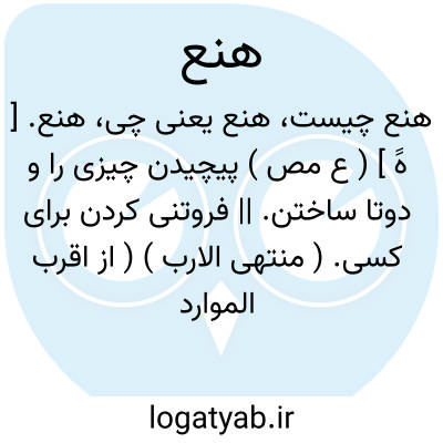 هنع. [ هََ ] ( ع مص ) پیچیدن چیزی را و دوتا ساختن. || فروتنی کردن برای کسی. ( منتهی الارب ) ( از اقرب الموارد ).