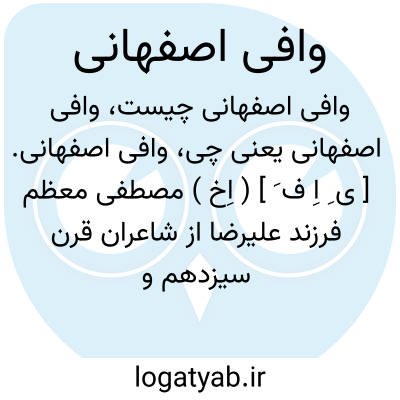 وافی اصفهانی. [ ی ِ اِ ف َ ] ( اِخ ) خلف میرزا جعفر غیرت اصفهانی شاعری که در قرن سیزدهم میزیسته است. ( از فرهنگ سخنوران دکتر خیامپور ).