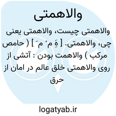 لغت نامه دهخدا والاهمتی. [ هَِ م ْ م َ ] ( حامص مرکب ) والاهمت بودن: آتشی از روی والاهمتی خلق عالم در امان از حرق تو.سوزنی.