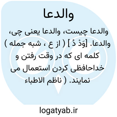 والدعا. [وَدْ دُ ] ( از ع، شبه جمله ) کلمه ای که در وقت رفتن و خداحافظی کردن استعمال می نمایند. ( ناظم الاطباء ).