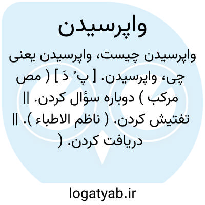 (مصدر ) ۱ - مجددا پرسیدن. ۲ - پرسیدن سوال کردن: چو شهر لواط و یرانم چو چشم لوط حیرانم سبب خواهم که وا پرسم ندارم زهره و یارا ( دیوان کبیر۲ ): ۱ - باز پرسی کردن تحقیق کردن: (( صبح شدن هدهد جاسوس کز او را پرسند کوس شد طوطی غماز کز او وا شنوند. ) ) ( خاقانی. سج. ۱٠٠ )