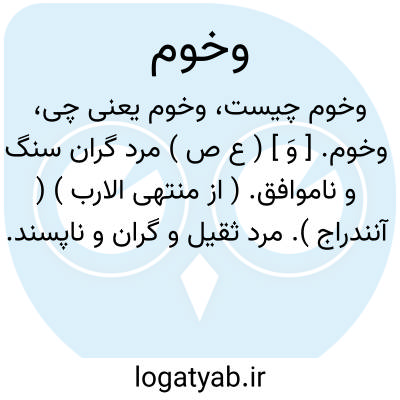 وخوم. [ وَ ] ( ع ص ) مرد گران سنگ و ناموافق. ( از منتهی الارب ) ( آنندراج ). مرد ثقیل و گران و ناپسند. ج، وخام، وخامی، اوخام. ( ناظم الاطباء ). || ( ارض... ) زمین که گیاهش ناگوارنده باشد. ( منتهی الارب ) ( آنندراج ). رجوع به وخم و وخامة شود.