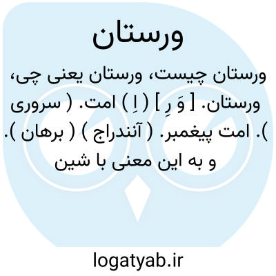 ورستان. [ وَ رِ ] ( اِ ) امت. ( سروری ). امت پیغمبر. ( آنندراج ) ( برهان ). و به این معنی با شین نقطه دار و نون هم آمده است. ( برهان )( آنندراج ). مصحف برروشنان. رجوع به وَرَستان شود.