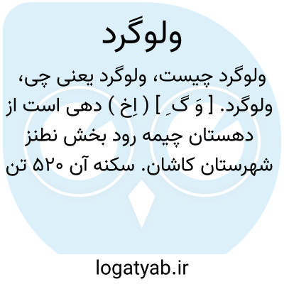 ولوگرد. [ وَ گ ِ ] ( اِخ ) دهی است از دهستان چیمه رود بخش نطنز شهرستان کاشان. سکنه آن 520 تن است. ( از فرهنگ جغرافیایی ایران ج 3 ).
