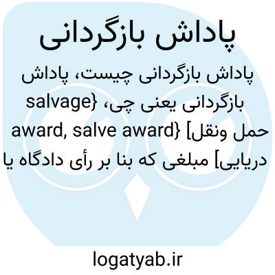 {salvage award, salve award} [حمل ونقل دریایی] مبلغی که بنا بر رأی دادگاه یا داور براساس قرارداد بازگردانی تعیین میشود و بابت بازگردانی اموالِ درمعرض خطر در دریا، به بازگردان پرداخت میشود متـ. هزینۀ بازگردانی salve charge,salvage charges