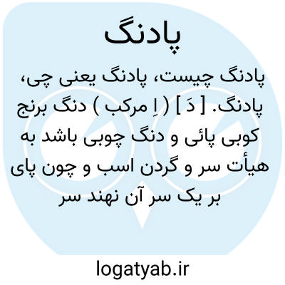 پادنگ. [ دَ ] ( اِ مرکب ) دنگ برنج کوبی پائی و دنگ چوبی باشد به هیأت سر و گردن اسب و چون پای بر یک سر آن نهند سر دیگر بلند شود و چون پای بردارند آن سر دیگر فرود آید و شلتوک کوفته شود و برنج از پوست برآید و برای جدا کردن پوست دیگر غلات نیز بکار است. پادنگه. نوع دیگر که با فشار آب حرکت کند آبدنگ نامیده شود. || در اصطلاح ساعت سازان مقابل پاملخ.