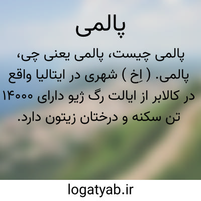 پالمی. ( اِخ ) شهری در ایتالیا واقع در کالابر از ایالت رگ ژیو دارای 14000 تن سکنه و درختان زیتون دارد.