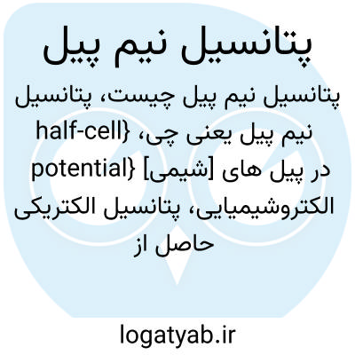 {half-cell potential} [شیمی] در پیل های الکتروشیمیایی، پتانسیل الکتریکی حاصل از واکنش کلی پیل که می توان آن را به صورت حاصلِ جمع پتانسیل های دو نیم پیل مربوط به آند و کاتد در نظر گرفت