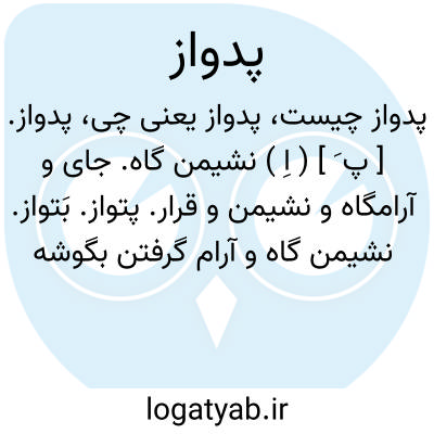 پدواز. [ پ َ ] ( اِ ) نشیمن گاه. جای و آرامگاه و نشیمن و قرار. پتواز. بَتواز. نشیمن گاه و آرام گرفتن بگوشه ای که به آخر کارها و جایها آنجا آرام دارند. ( حاشیه فرهنگ اسدی نسخه نخجوانی ). دو چوب بلند باشد که هر دو را از هم به اندک فاصله بر زمین فروبرند و چوب دیگر بعرض بر بالای آنها بندند تا کبوتران و گاهی جانوران شکاری بر آن نشینند و آنرا بعربی میقعه خوانند. ( برهان ). و رجوع به پرواز شود:
