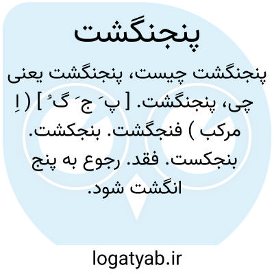 ( اسم ) ۱- مجموع انگشتان هر یک از دست و پا که بکف پیوسته است: ( پنج انگشت یکی نیستند. ) ۲- چوبی است بلند که بر سر آن پنج چوب کوتاه مثل انگشت نصب شده و بدان خرمن کوفته را باد دهند انگشته آشور پنجه مدری هاکو. ۳- گیاهی است که برگ آن مانند برگ شاهدانه است و بوت. آن در کنار رودها روید ذو خمسه اصابع ذوخمسه اوراق دل آشوب پنجنگشت. تخم آنرا حب الفقد خوانند.